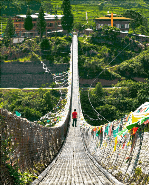 As you walk across, with prayer flags dancing in the wind and rivers roaring below, you’ll feel the thrill and peace that define Bhutan’s spirit.