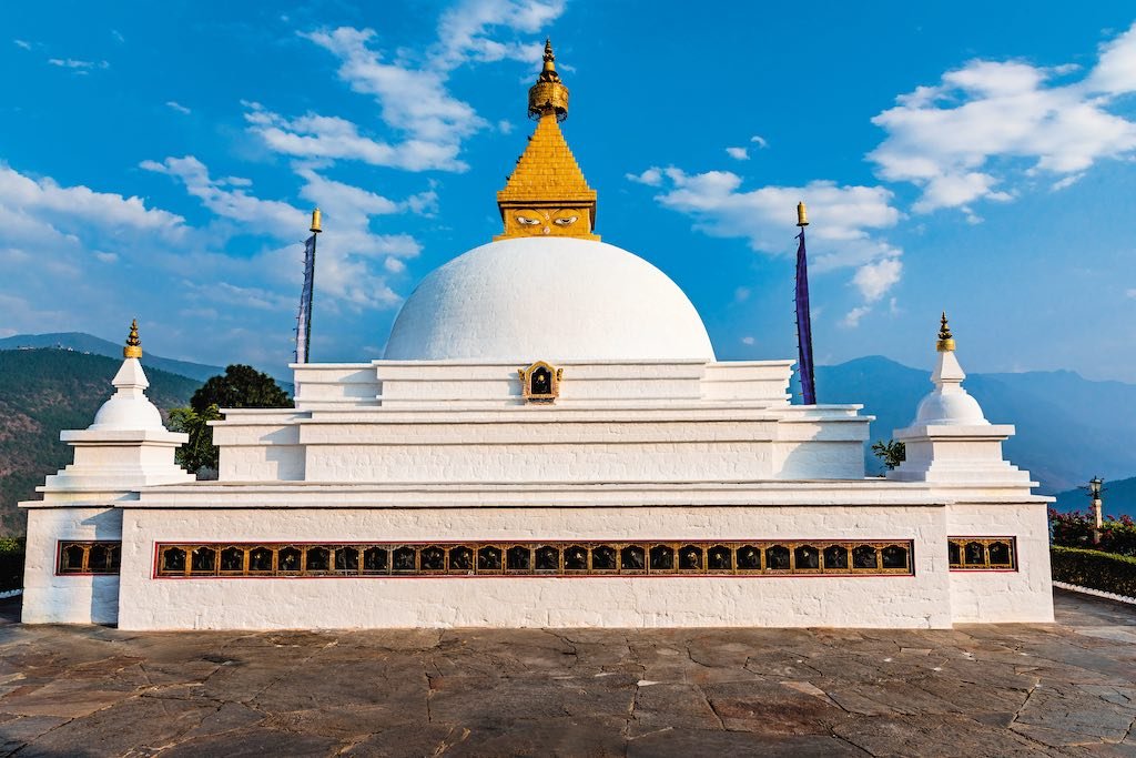 Built by the Queen Mother for the well-being of Bhutan, this exquisite temple sits high above the Mo Chhu valley.